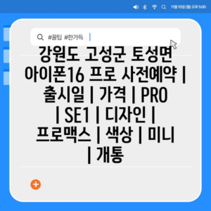 강원도 고성군 토성면 아이폰16 프로 사전예약| 핵심 정리