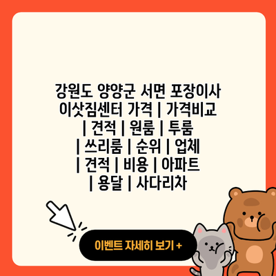 아래는 강원도 양양군 서면의 대표적인 포장이사 이삿짐센터들에 대한 가격 비교입니다: