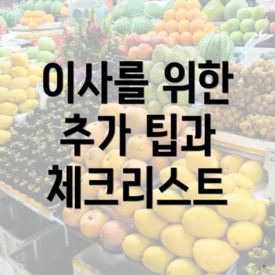 이사는 많은 준비가 필요한 과정이에요. 특히 여주시 능서면 포장이사 서비스를 이용하거나 이삿짐센터를 통해 이사할 때는 더더욱 꼼꼼한 준비가 필수죠. 그래서 이사를 계획하는 분들을 위해 유용한 추가 팁과 체크리스트를 제공할게요.