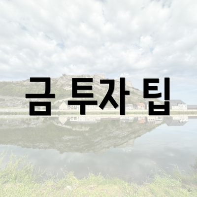 금시에 대한 이해가 높아지면, 금 투자도 더욱 수월해질 거예요. 금 투자를 위한 몇 가지 팁을 소개할게요: