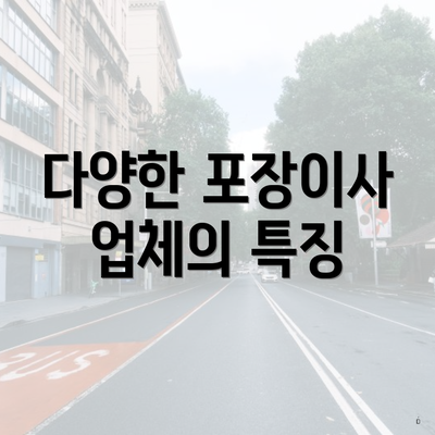 대구광역시 달성군 다사읍에서의 포장이사를 고려할 때, 다양한 포장이사 업체들이 제공하는 서비스의 특징을 이해하는 것이 매우 중요해요. 여기에서는 각 업체의 특성과 제공하는 서비스에 대해 자세히 살펴보겠습니다.