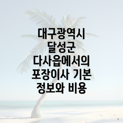 대구광역시 달성군 다사읍에서의 포장이사 기본 정보와 비용
