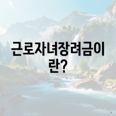 근로자녀장려금은 저소득 가구에서 자녀를 양육하는 부모를 대상으로 하는 정부의 지원금이에요. 이는 가정의 경제적 부담을 덜고, 근로를 유도하기 위해 설계된 제도랍니다. 이 제도를 통해 많은 가정이 혜택을 받고 있으며, 자녀의 교육 및 생활비를 지원받을 수 있어요.