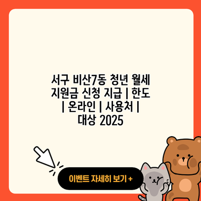 서구 비산7동의 청년 월세 지원금에 대한 모든 정보를 지금 바로 알아보세요.