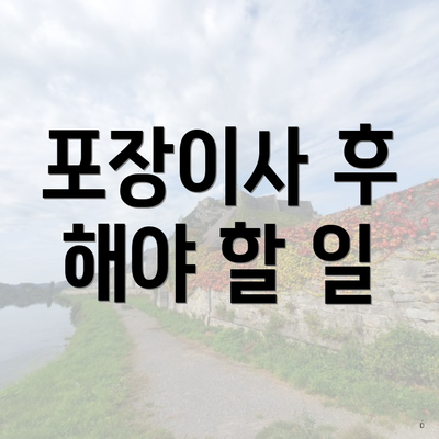 A3: 포장이사 후에는 모든 물품 및 가전 점검, 정리와 배치, 이사 후 청소를 통해 깨끗한 환경을 유지해야 합니다.