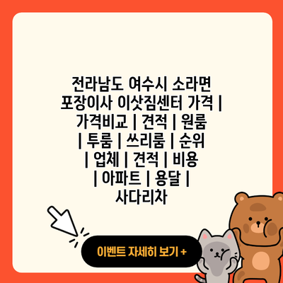 여수시 소라면에서 쓰리룸 포장이사를 계획하고 계신가요? 그러면 다양한 이삿짐센터의 선택지와 가격을 비교하는 것이 중요해요. 아래의 표는 여수시 내에서 쓰리룸 이사를 제공하는 포장이사 업체들을 비교하여 핵심 정보를 정리한 것입니다.