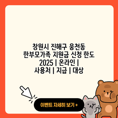 2025년 창원시 진해구 웅천동 한부모가족 지원금 신청 방법과 사용처 안내