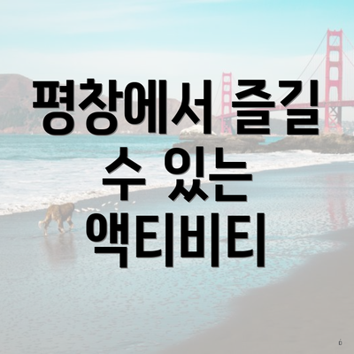 평창은 자연뿐만 아니라 다양한 액티비티를 즐길 수 있는 장소로 유명하죠. 여기서 몇 가지를 소개할게요.